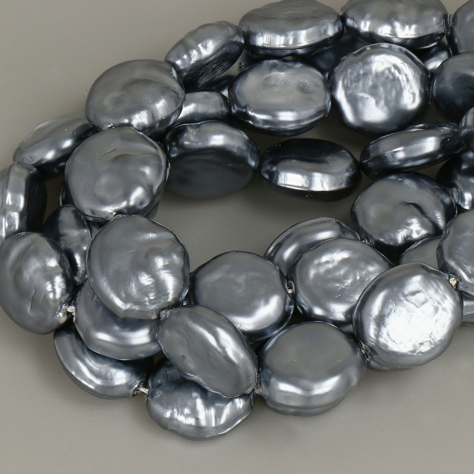 Shell Beads represent, to date, the best imitation of natural pearls. Unlike other imitation pearls, made of glass or acrylic, these are produced with real shell which, in addition to increasing their value, gives the beads a much more substantial weight similar to that of natural pearls. After being cut and smoothed into the desired shape, the shell pearl is subjected to a sophisticated coating process which reproduces the color and pearly reflection typical of natural pearls.