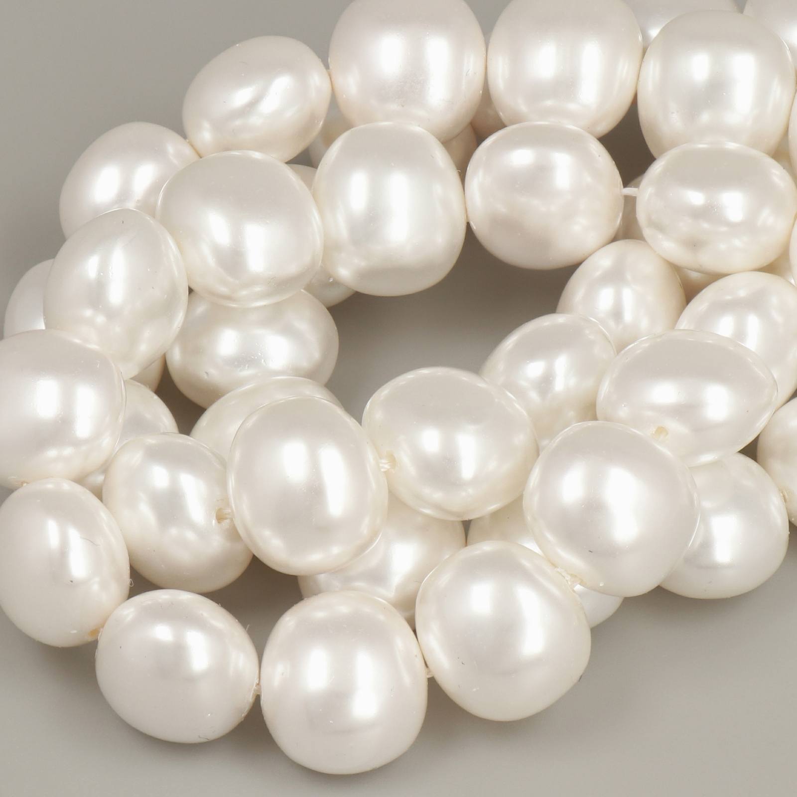 Shell Beads representan, hasta la fecha, la mejor imitación de las perlas naturales. A diferencia de otras perlas de imitación, de vidrio o acrílico, estas se fabrican con concha auténtica lo que, además de aumentar su valor, confiere a las perlas un peso mucho más sustancial similar al de las perlas naturales. Después de cortarla y alisarla hasta darle la forma deseada, la concha de perla se somete a un sofisticado proceso de recubrimiento que reproduce el color y el reflejo nacarado típico de las perlas naturales.