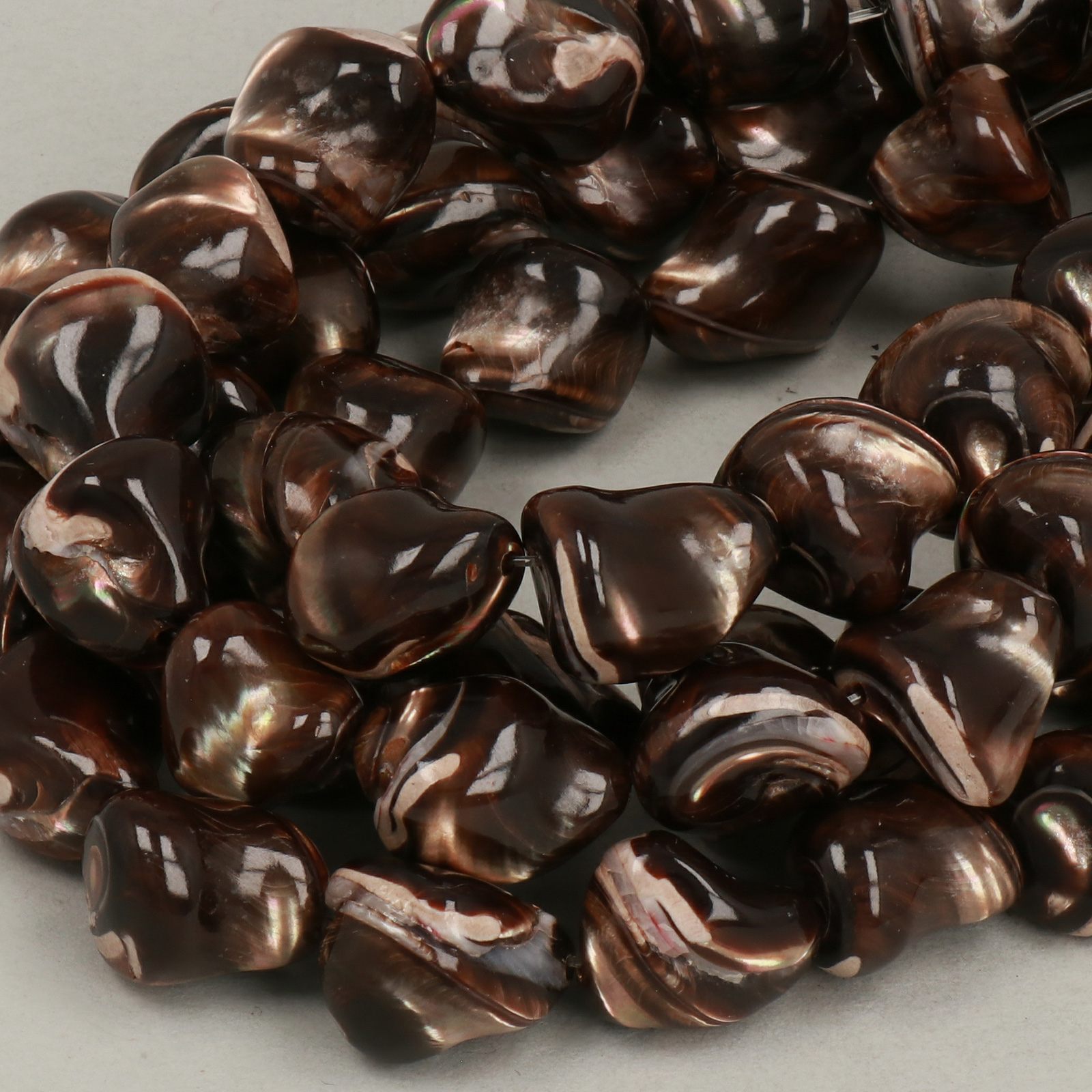 Da secoli le affascinanti sfumature iridescenti della madreperla vengono utilizzate per realizzare gioielli e decorazioni. La madreperla, che si forma all'interno delle conchiglie di alcuni molluschi (soprattutto ostriche), è una sostanza calcarea che il mollusco produce in reazione all'intrusione di un corpo estraneo all'interno della conchiglia. Con il passare del tempo, lo strato di sostanza che si accumula e si solidifica nella parte interna del guscio crea la madreperla. Esistono diverse varietà di Madreperla. Le più diffuse sono quella bianca, solitamente estratta dalla conchiglia perlifera, e quella marrone. Molto apprezzata nella creazione di perline e componenti in madreperla naturale è la madreperla Tahitiana (di colore scuro). Data l’origine della materia prima, la madreperla può assume svariate tonalità che variano dalle infinite sfumature di bianco, a conchiglie di toni più rosa, beige e, perfino, violacei.