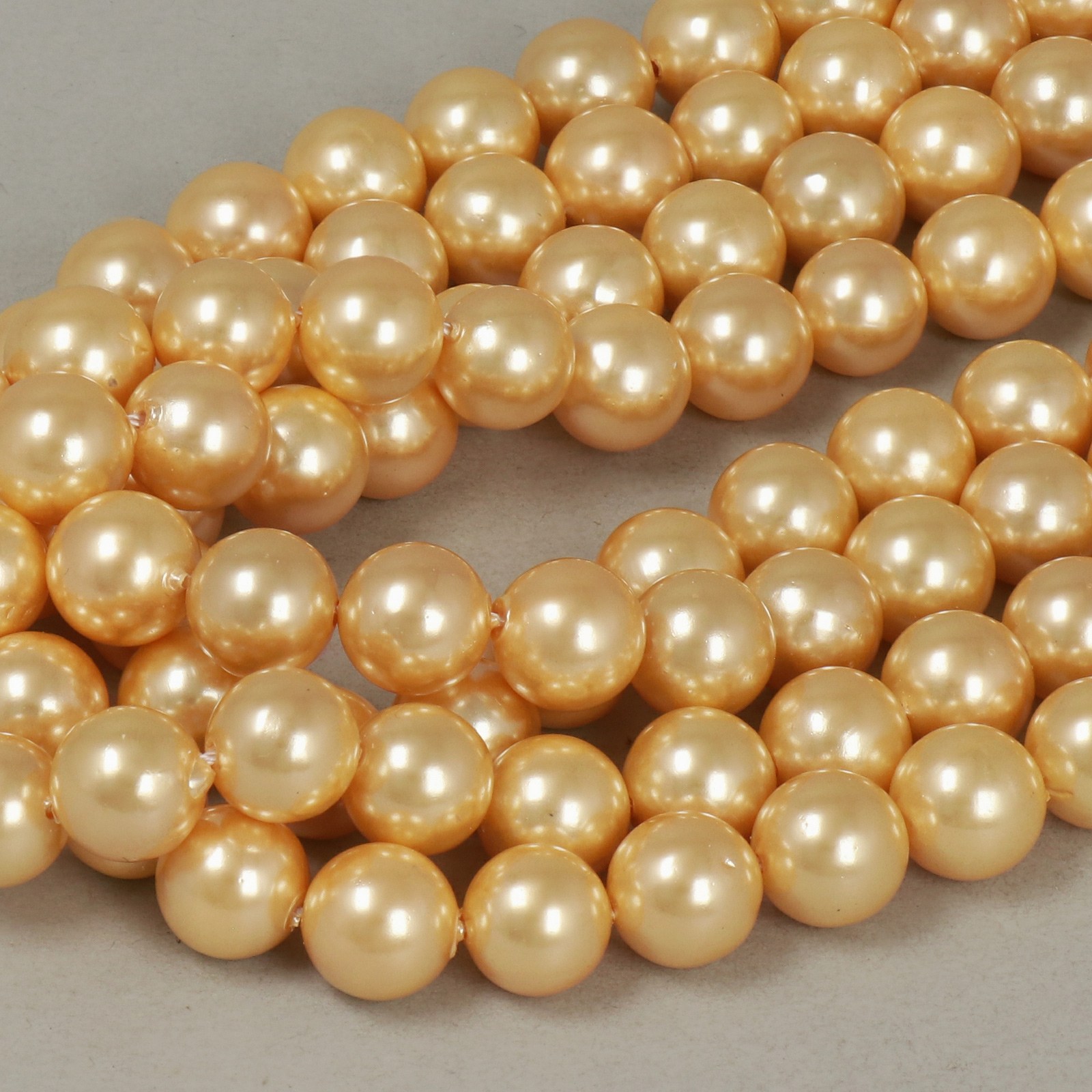 Le perle Shell Beads rappresentano, ad oggi, la miglior imitazione delle perle naturali. A differenza di altre imitazioni di perle, realizzate in vetro o acrilico, queste sono prodotte con vera conchiglia il che, oltre ad aumentarne il valore, conferisce alle perline un peso molto più sostanzioso e simile a quello delle perle naturali. Dopo esser stata tagliata e levigata nella forma desiderata la perla di conchiglia viene sottoposta a un sofisticato processo di coating che riproduce il colore e il riflesso perlaceo tipico delle perle naturali.