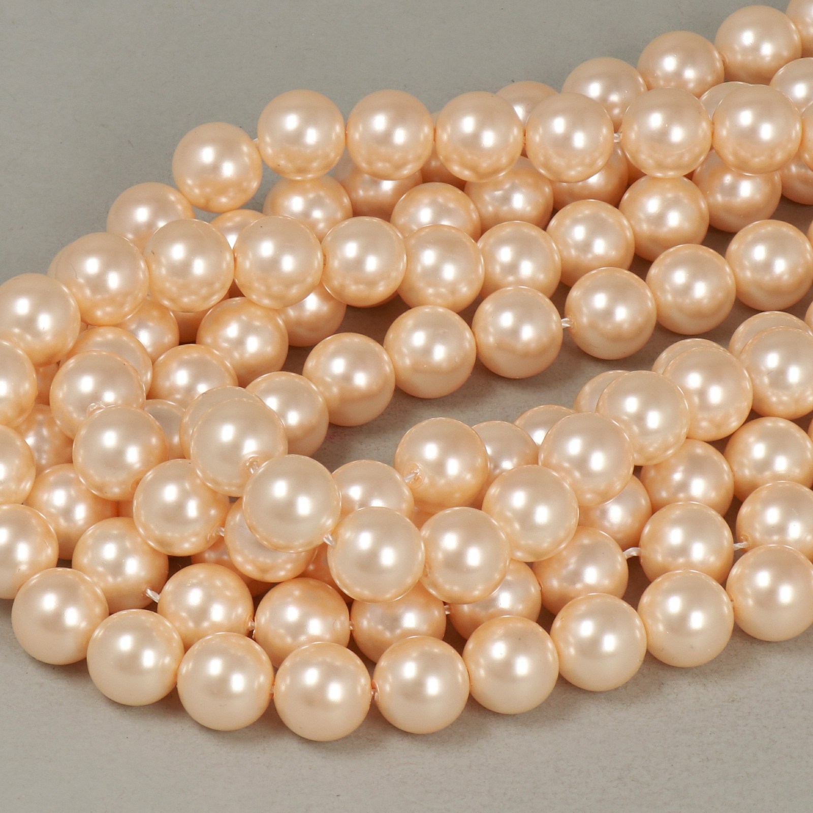 Le perle Shell Beads rappresentano, ad oggi, la miglior imitazione delle perle naturali. A differenza di altre imitazioni di perle, realizzate in vetro o acrilico, queste sono prodotte con vera conchiglia il che, oltre ad aumentarne il valore, conferisce alle perline un peso molto più sostanzioso e simile a quello delle perle naturali. Dopo esser stata tagliata e levigata nella forma desiderata la perla di conchiglia viene sottoposta a un sofisticato processo di coating che riproduce il colore e il riflesso perlaceo tipico delle perle naturali.