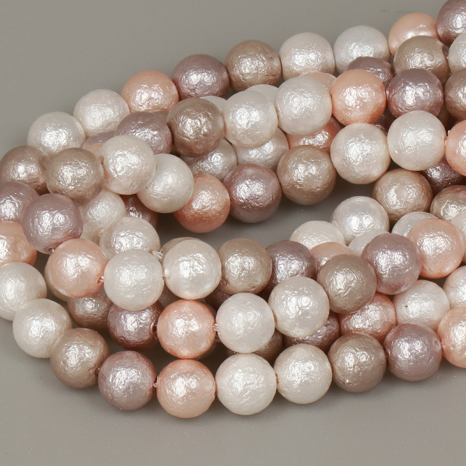 Le perle Shell Beads rappresentano, ad oggi, la miglior imitazione delle perle naturali. A differenza di altre imitazioni di perle, realizzate in vetro o acrilico, queste sono prodotte con vera conchiglia il che, oltre ad aumentarne il valore, conferisce alle perline un peso molto più sostanzioso e simile a quello delle perle naturali. Dopo esser stata tagliata e levigata nella forma desiderata la perla di conchiglia viene sottoposta a un sofisticato processo di coating che riproduce il colore e il riflesso perlaceo tipico delle perle naturali.